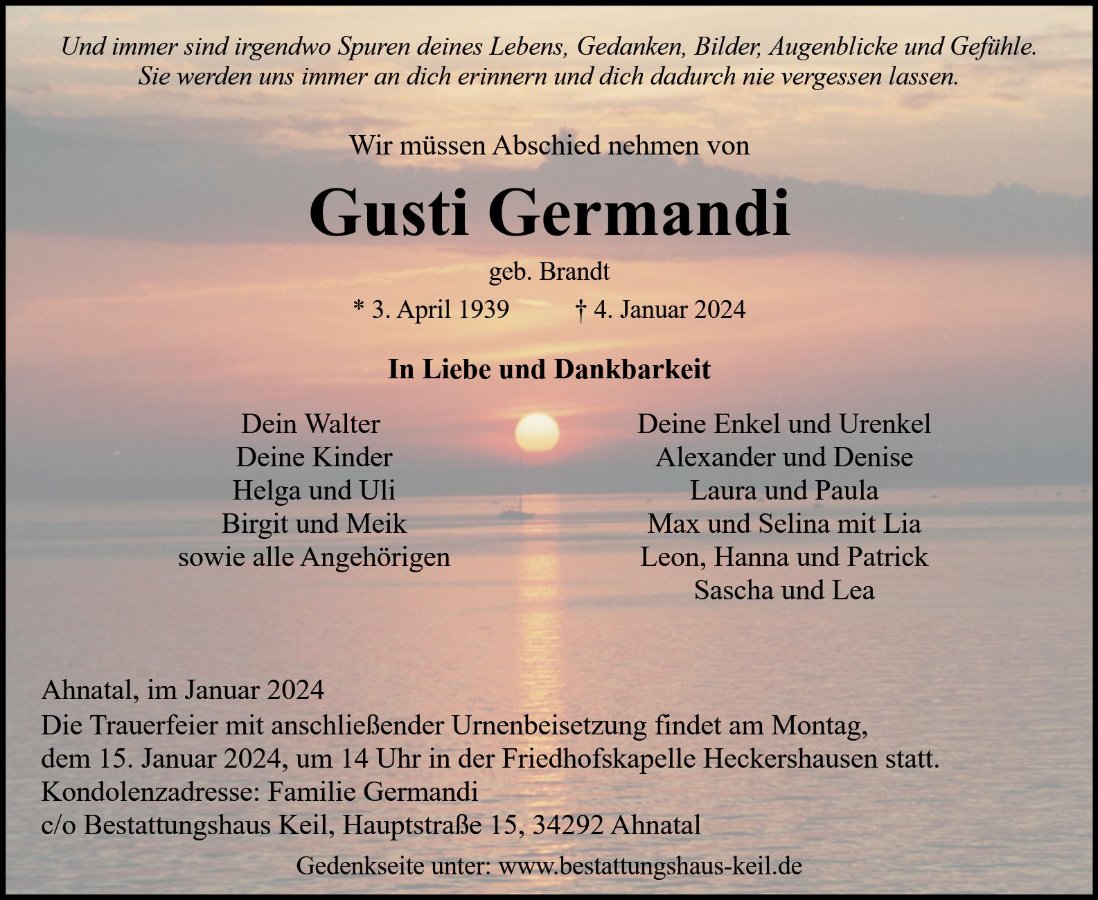 Trauerfeier mit anschließender Urnenbeisetzung, Ahnatal-Heckershausen