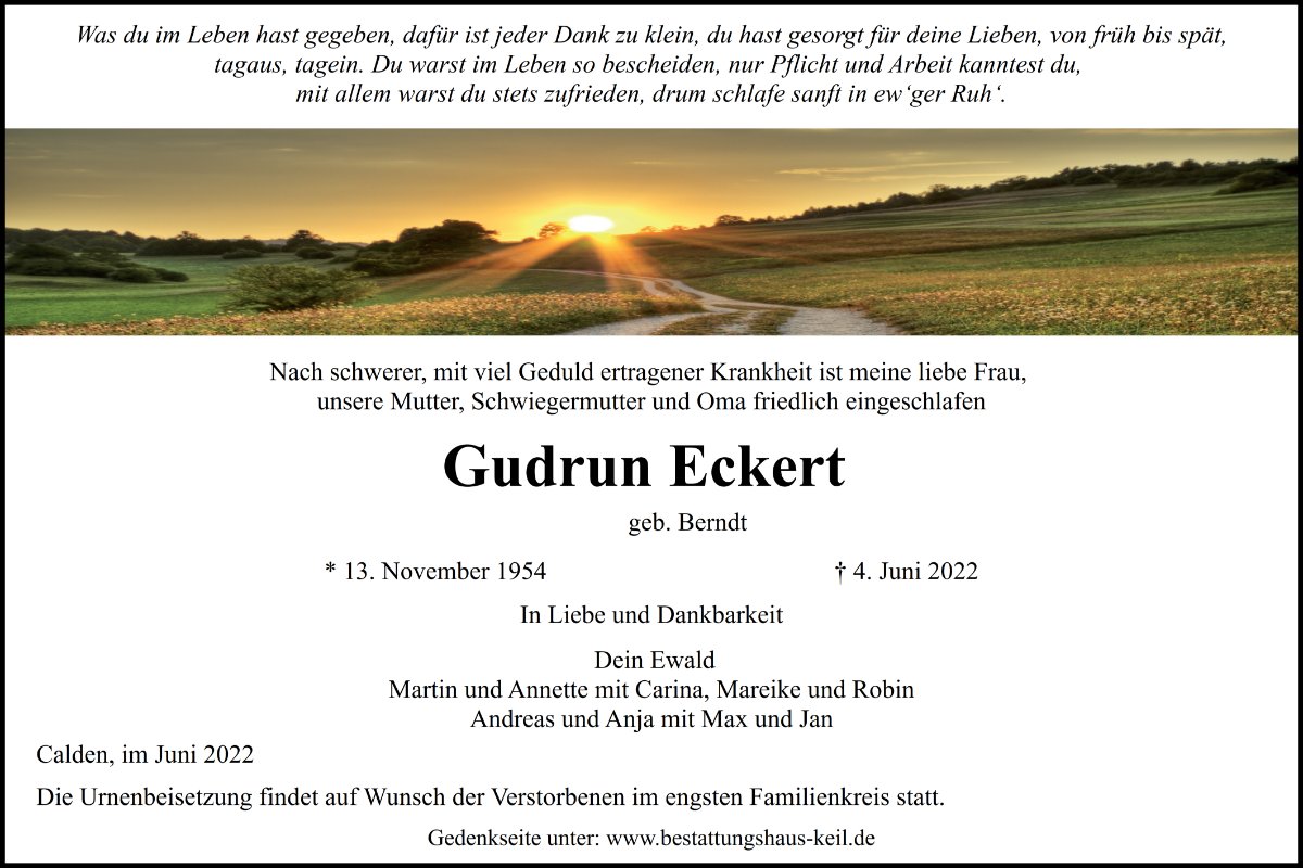 Gudrun Eckert gestorben am 4. Juni 2022