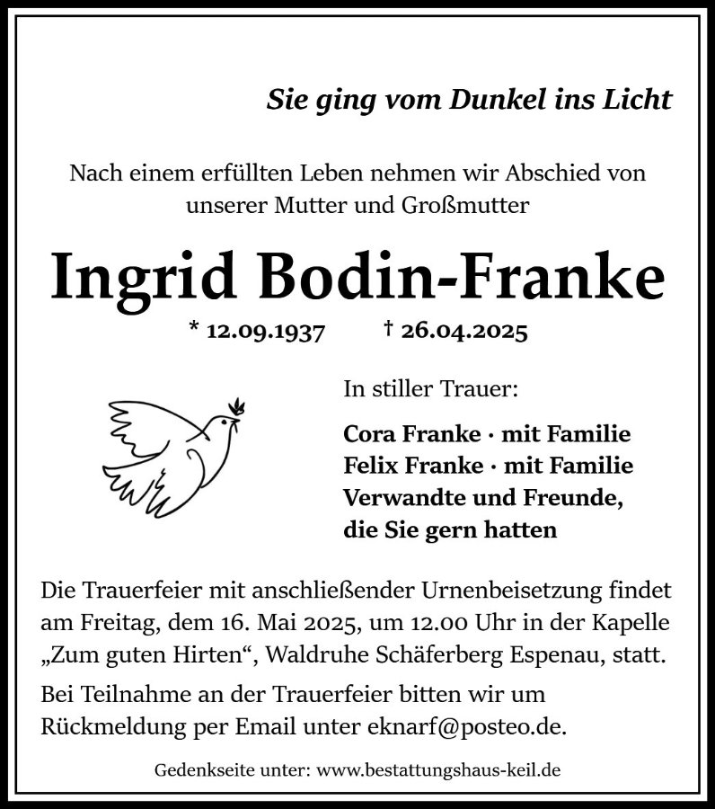 Ingrid Bodin-Frankegestorben am 26. April 2025