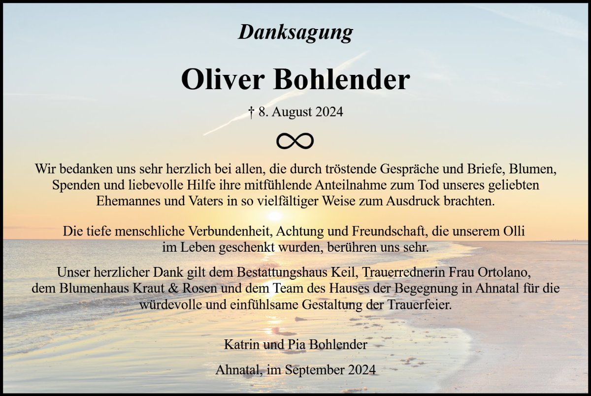 Oliver Bohlendergestorben am 8. August 2024