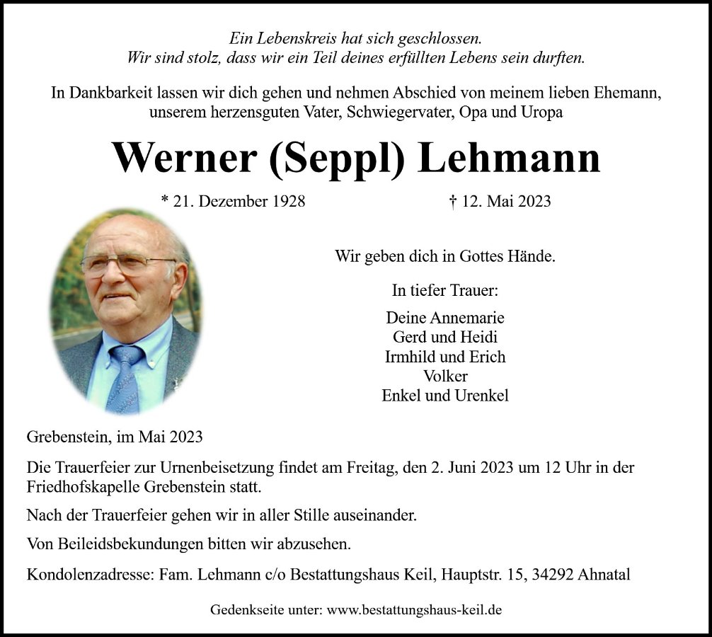 Werner Lehmanngestorben am 12. Mai 2023